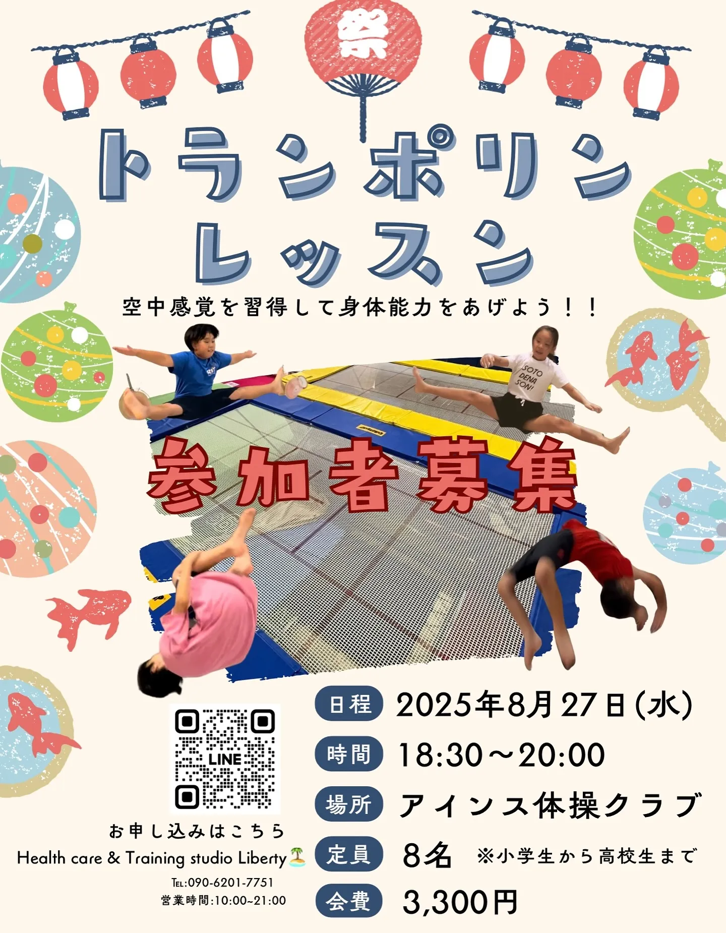 8月のトランポリンレッスンの日程が決まりました🎪